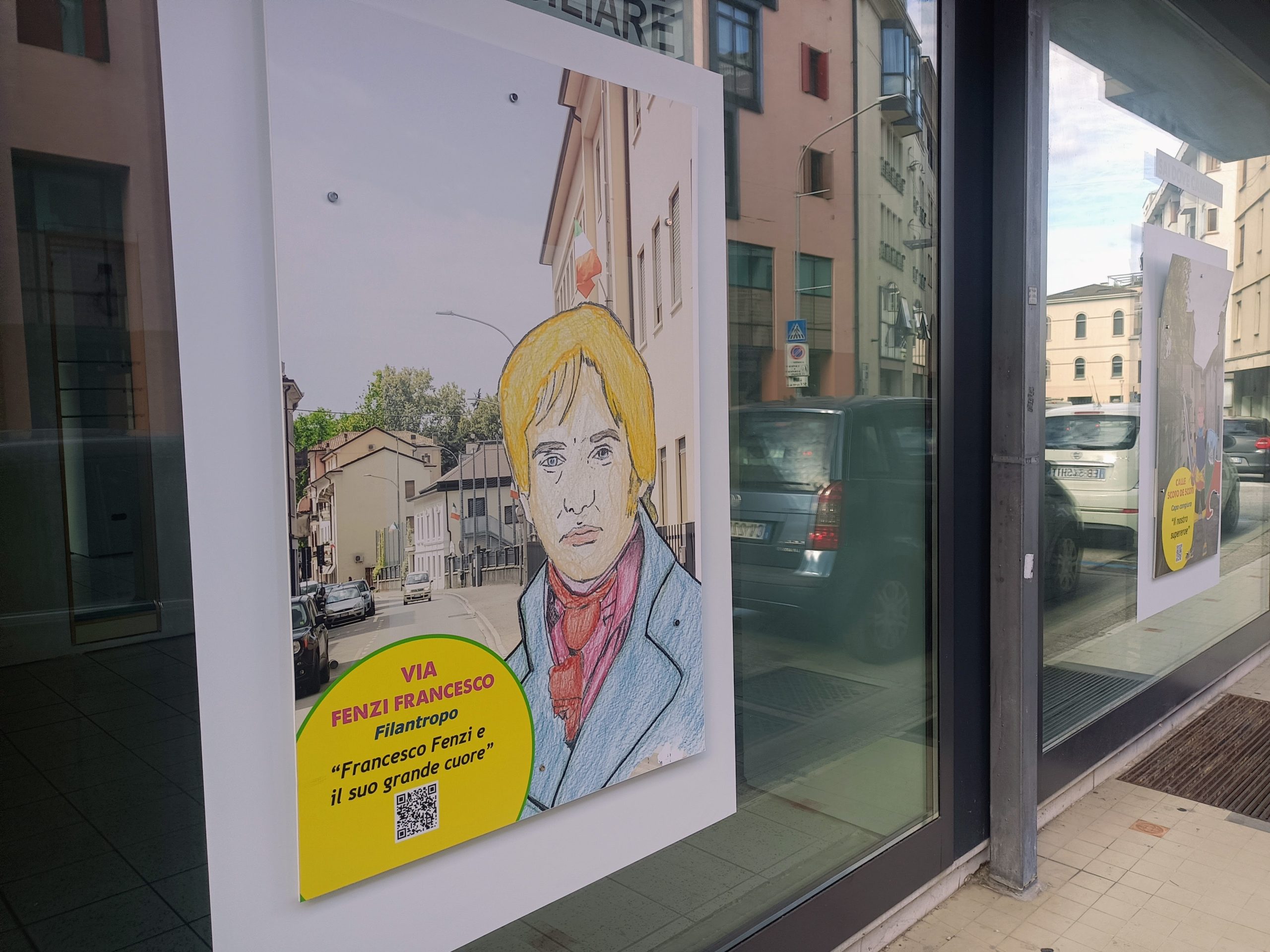 Alcune vetrine sfitte di piazza Calvi sono state trasformate in aree espositive. Oggi al posto degli spazi spenti campeggiano pannelli colorati che raccontano la vita di pittori, benefattori, patrioti e studiosi. Testi, illustrazioni e QR code guidano i passanti in un percorso di scoperta che unisce memoria storica e sguardo contemporaneo.